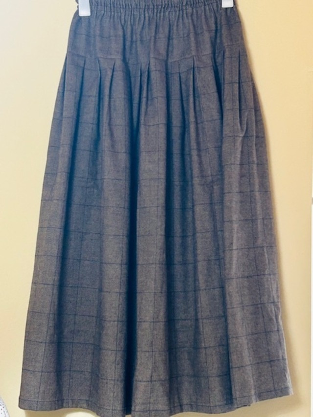 ###軽やかさと温もりをあわせ持つシャギーチェックのタックスカート 表面はうっすらと起毛し裏面はさらっとした肌触りの コットンシャギーチェック生地を使用しています ふんわり柔らかく軽やかな着心地ながら 透け感がなく安心してお召いただける素材感 きれいな落ち感も魅力の一つです チェック柄は主張しすぎず 装いに自然な奥行きをプラスしてくれます シンプルなトップスと合わせるだけで コーディネートがすっと整います 広がりすぎないシルエットに仕立てました 季節の移ろいを感じながら 心地よく楽しめる大人のタックスカートです ウエストはしっかり伸びるゴム仕様で リラックスした着心地と上品な見た目を両立しています ※写真はイベントでのご試着シーン 実際の着こなしの雰囲気をぜひ感じてみてください。 ⸻ ❤️モデル身長:160cm ❤️サイズ:総丈 約84cm(フリーサイズ) 〇素材:コットン100% この作品は一点もの 生地やデザインのカスタマイズも承りますのでお気軽にご相談ください♬ Made in Japan puro a life