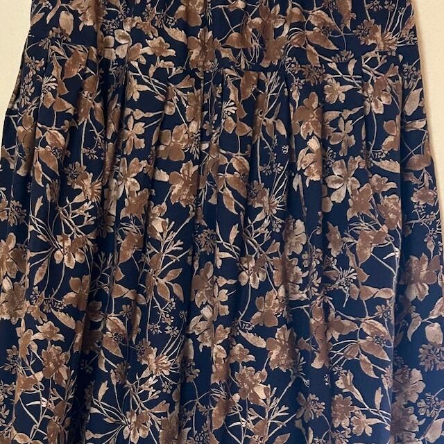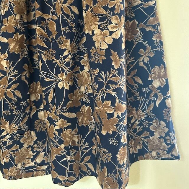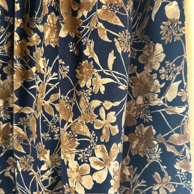 ネイビー系をベースに茶系の花柄をあしらった落ち着いた配色は